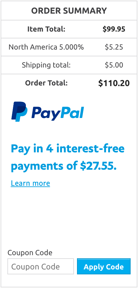 Just a quick note here - The location of the PayPal messaging component on both extensions is for demonstration purposes only - you should move it to a location that makes sense for your website! PayPal recommends keeping the messaging component near the product or order total where available.