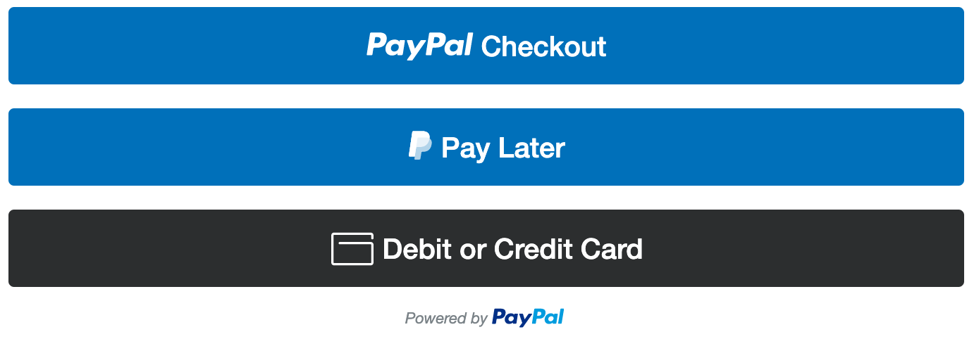 The new PayPal buttons - which we've updated the Braintree extension to use, and have created the PayPal Commerce Platform extension around - provide several exciting financing options to your consumers, in addition to the ability to pay with their credit card or with their PayPal balance.